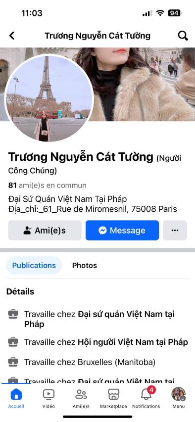 Hiện nay có tài khoản facebook Trương Nguyễn Cát Tường (Người Công Chúng) giả mạo làm việc tại Đại sứ quán Việt Nam tại Pháp đăng thông tin làm dịch vụ cư trú cho người từ nước khác đến Pháp và người không có giấy tờ cư trú.