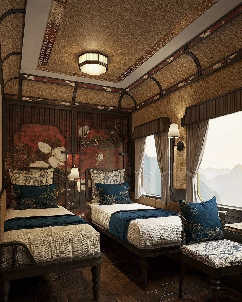 Theo trang web chính thức của Sjourney, bên trong tàu được thiết kế theo phong cách Đông Dương (Indochine) năm 1930 với tông màu trung tính. Đoàn tàu có tổng cộng ít nhất 13 toa, bao gồm 10 toa ngủ (trong đó mỗi toa chỉ có 3 buồng hạng VIP dành cho khách với tiêu chuẩn 7 sao) và khu vực Bistro Car (một quầy rượu, một lounge và một nhà hàng). Tại toa ngủ, du khách có thể lựa chọn phòng cabin giường đôi hoặc cabin giường đơn với diện tích khoảng 10 m2 và có quản gia riêng.