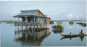 Sur la photo, on voit une colonne de mesure des crues indiquant les niveaux d’eau atteints au fil des années, un témoignage vivant de la vie des habitants d’An Giang, intimement liée aux rivières et aux inondations saisonnières. Dans cette région, les maisons sur pilotis sont