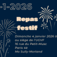 Repas festif Dimanche 4 janvier 2026 à midi au siège de l'UGVF 16 rue du Petit-Musc. Paris 4è