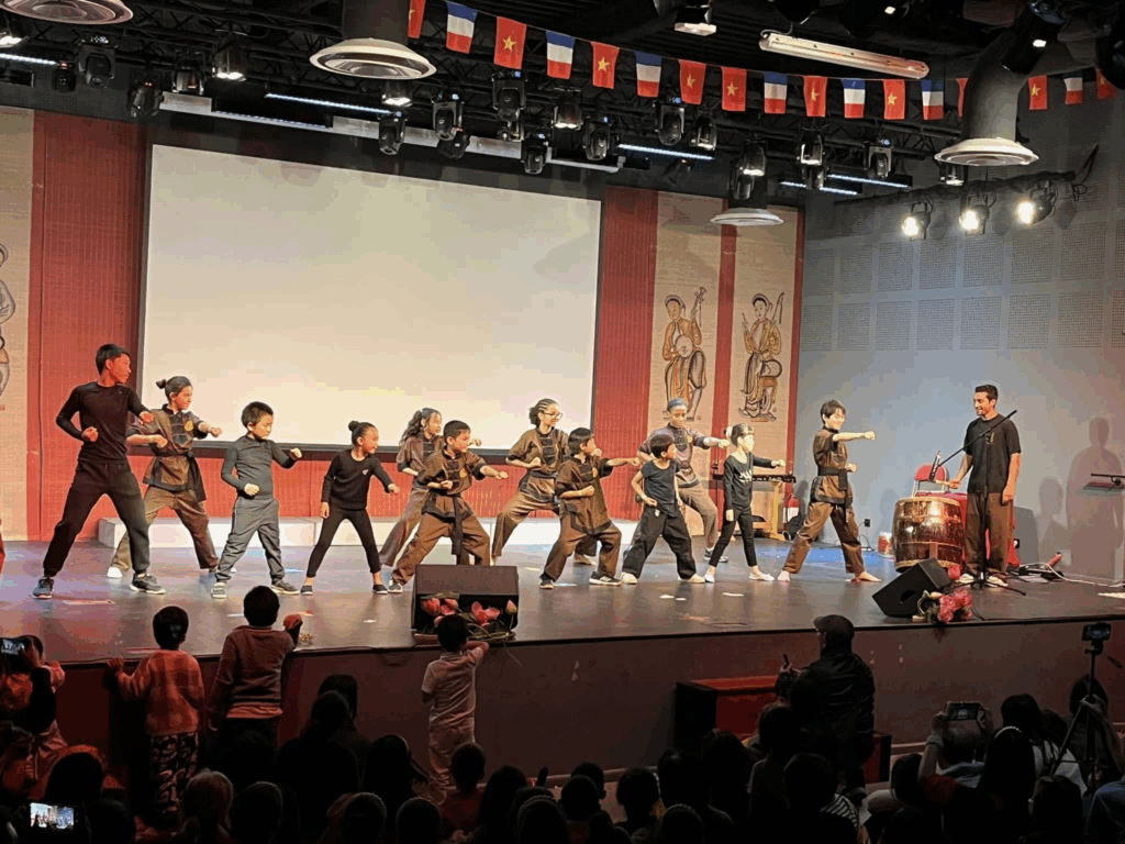 En effet, les élèves des classes « Măng Non », « Cánh diều » et « Cô Claudine » sont montés sur scène pour nous offrir des chants en vietnamien et des danses sur le thème de la Mi- automne. L’école d’arts martiaux « Võ Sơn Long » a présenté une démonstration de force et de discipline.
