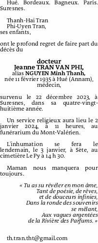 Docteur Jeanne Trần Vân Phi alias NGUYỄN Minh Thanh