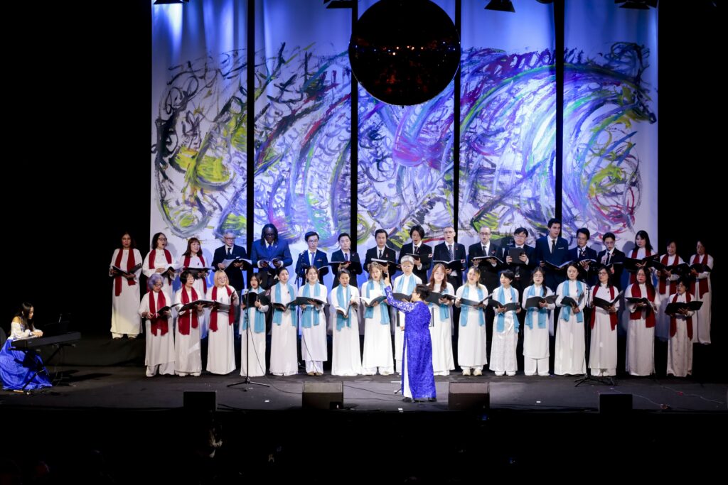 Un autre moment marquant a été la présentation d’un extrait de l’œuvre chorégraphique « Bên ni bên nớ »(2ci2là), interprétée par de jeunes danseurs issus de la troisième génération de Vietnamiens de la diaspora, sous la direction artistique de Frédérique Trần Sơn Tây. L’œuvre a impressionné par sa fusion créative entre la danse traditionnelle du bambou (múa sạp) et le hip-hop moderne, illustrant avec force l’esprit de métissage culturel de la jeune génération vietnamienne née et grandie à l’étranger.