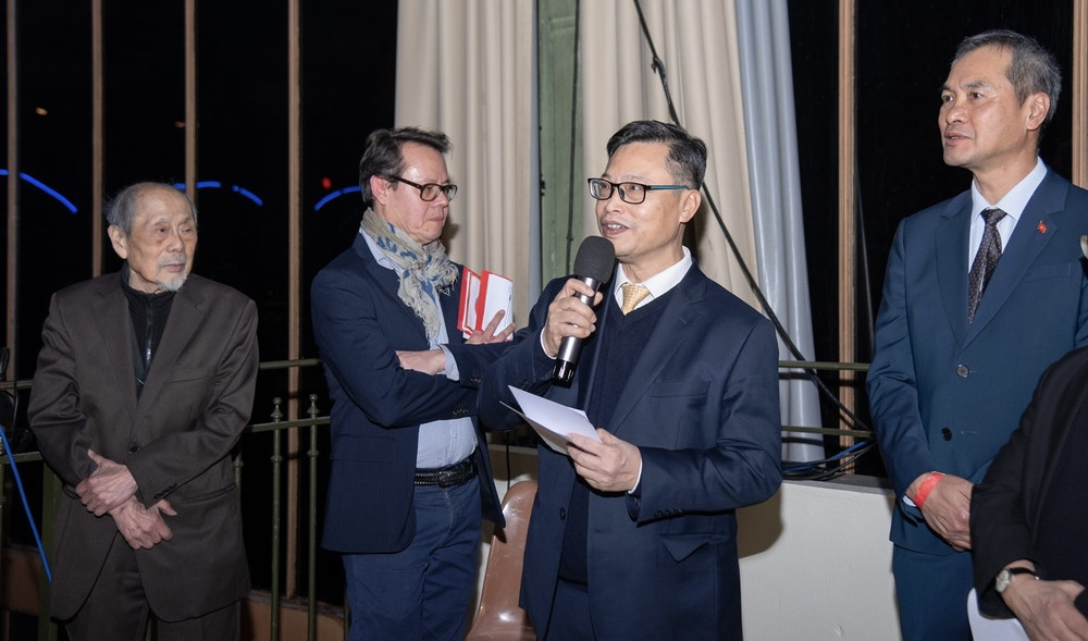 Prenant la parole lors de la cérémonie, l’Ambassadeur du Vietnam en France, Trịnh Đức Hải, a souligné : « Le Tết est le fil d’or qui relie chaque Vietnamien à la terre de ses ancêtres et à ses racines ». « Cet événement revêt une signification particulière alors que l’année 2026 marque le 115ᵉ anniversaire du long périple du Président Hô Chi Minh à la recherche d’une voie pour le salut national ». L’Ambassadeur a également rappelé que l’Union générale des Vietnamiens de France (UGVF) est l’héritière de la première organisation patriotique fondée à Paris par Hô Chi Minh lui-même il y a de cela plus de cent ans. À cette occasion, il a exprimé son affection et son profond respect envers les membres vétérans de l’UGVF, dont M. Nguyễn Văn Bổn, Président d’honneur. Il s’est dit confiant que les générations suivantes, aujourd’hui investies de responsabilités au sein de l’UGVF, continueront à perpétuer et à renforcer la tradition d’un attachement indéfectible à la patrie de leurs aînés.
