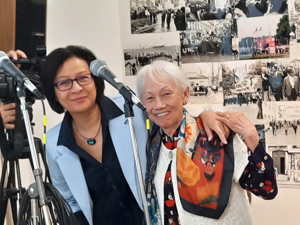 Ce samedi 13 mai 2023, une centaine de Viêt kiều et d’ami-e-s, sont venus revivre la journée du 27 janvier 1973. Sur les pans des murs de l’UGVF au 16 rue du Petit Musc 75004 Paris, sont collées des photos des Parisiens, des Viêt Kiêu de toutes les villes de France, rassemblés devant l’Avenue Kléber à Paris pour acclamer la sortie des délégués entre autres, Mme Nguyen Thi Binh, MM. Xuan Thuy, Vo Van Sung. Nos enfants, Hà (8 ans), Minh (6 ans) couraient rejoindre Hao Nhiên, Hong Anh, Mong Diep et leurs amis.