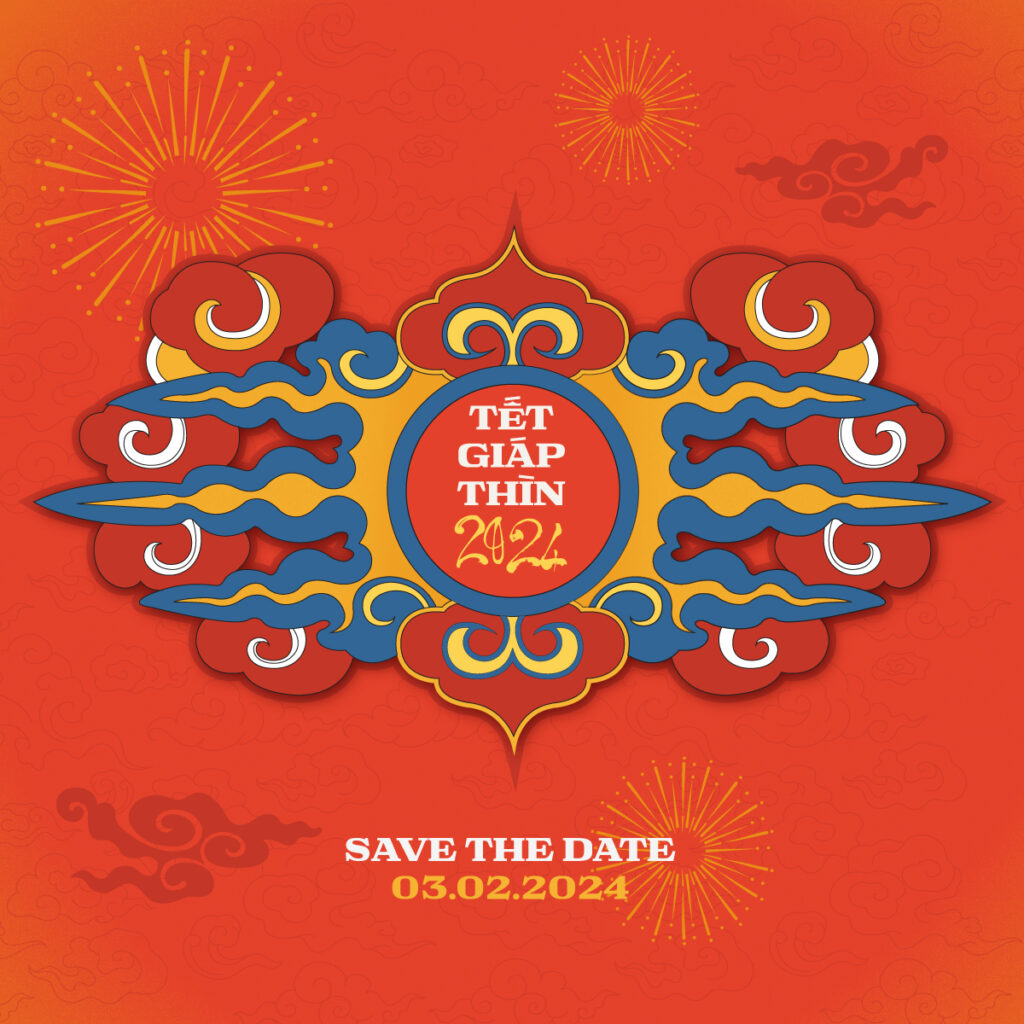 Cela se reflète également dans la police « Tết Giáp Thìn – 2024 » et « Save the Date 03.02.2024 », une police de calligraphie combinée à une police moderne.