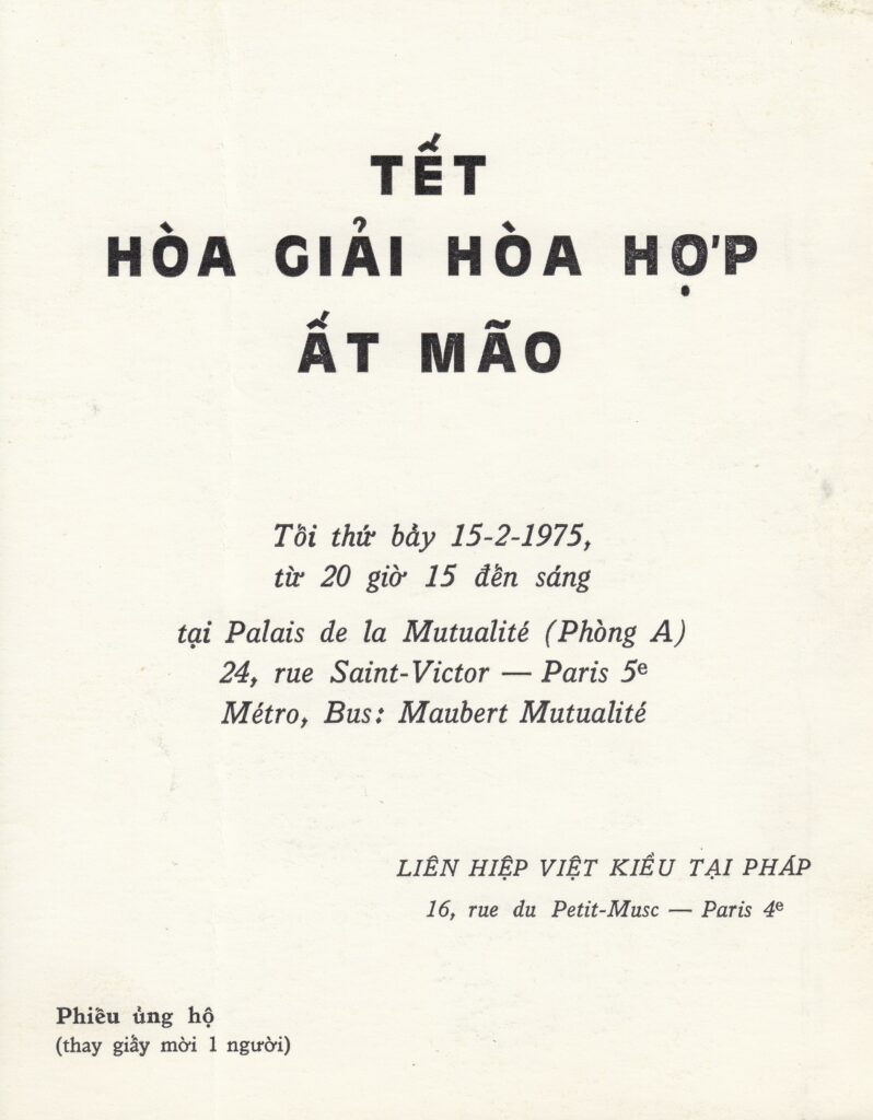 Début 1975, l’Union organisa ainsi le « Têt de réconciliation et de concorde de l’année du Chat (Ất Mão) ».