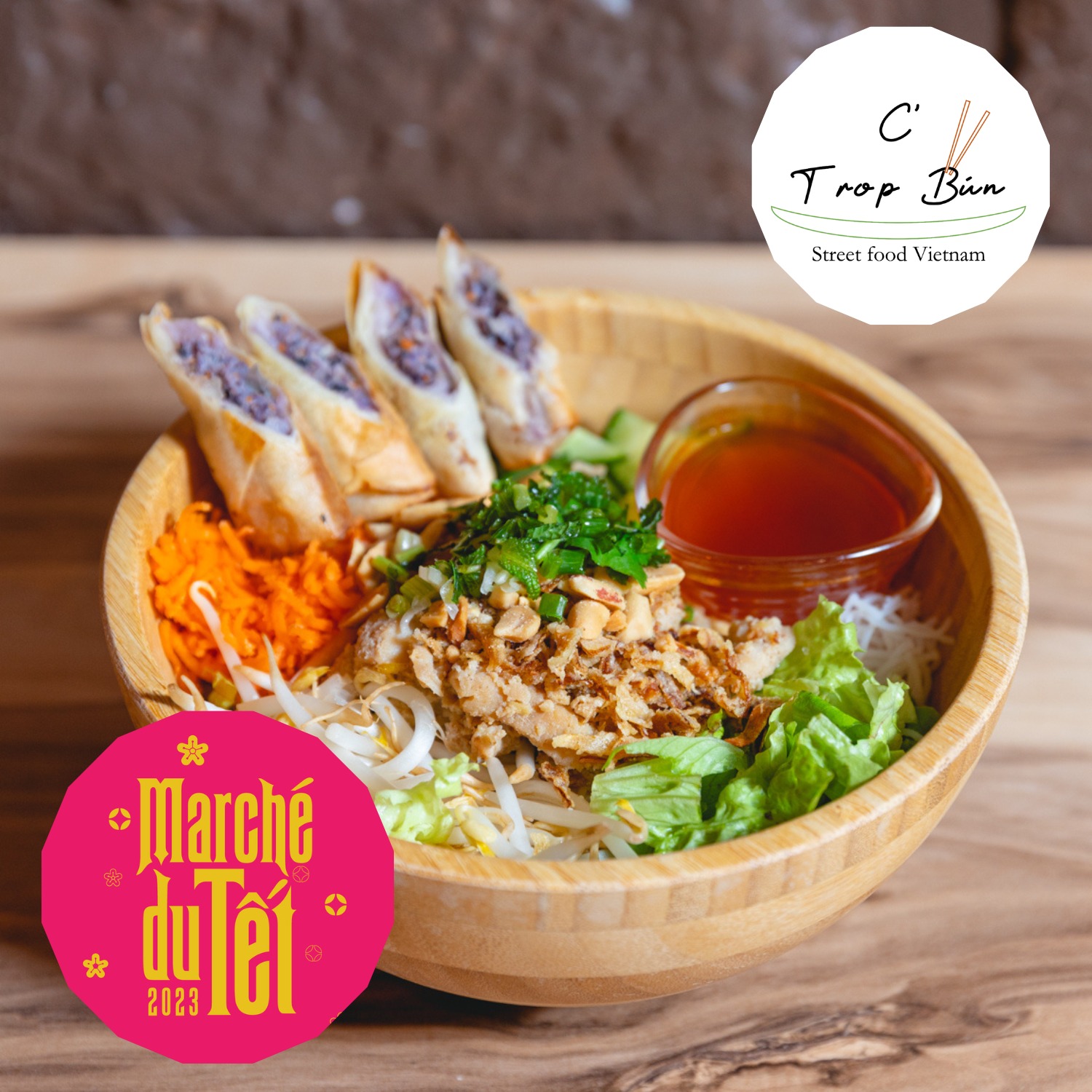 Un marché regroupant des stands de professionnels aux saveurs traditionnelles (spécialités culinaires, livres, produits du Vietnam, artisanat),