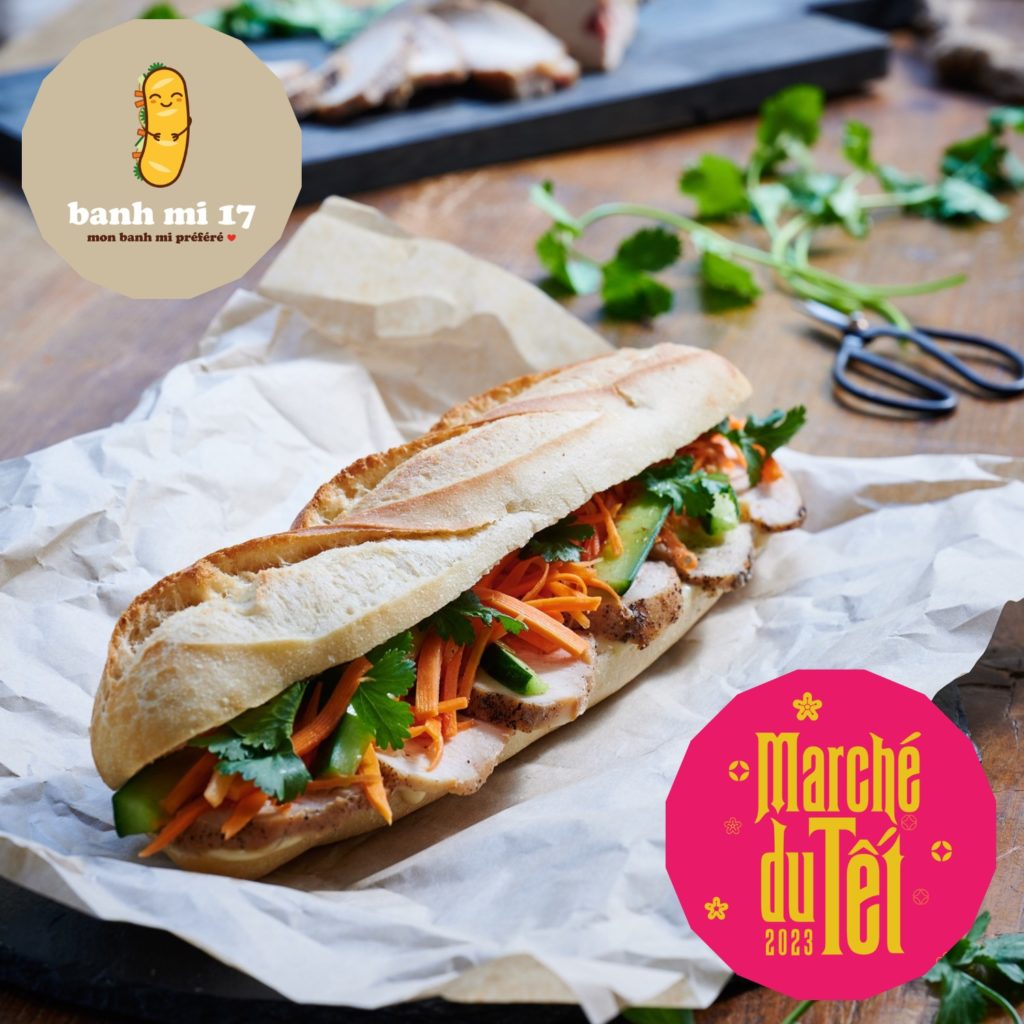Banh mi 17 & Paté Sô seront en collaboration sur le « Marché du Têt 2023 » pour vous proposer des banh mi au poulet mariné, mais aussi des banh mi veggie ainsi que des petits patés chauds au porc…