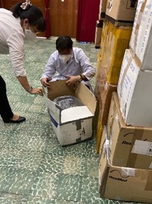 Le poids total des respirateurs s’élève à 220 kg et un envoi par avion a été fait par le service de fret humanitaire de Aviations sans frontières. Ces respirateurs sont centralisés par le grand hôpital Thông Nhât de HCMville qui les dispatche dans les hôpitaux de campagne, ceux-ci étant classés par niveau de gravité du Covid.