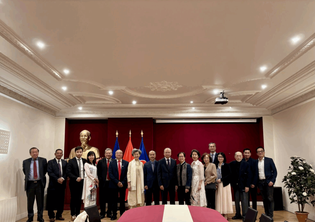 Paris, le 5 juin 2025 – Le soir du 5 juin, au siège de l’Ambassade du Vietnam en France (61 rue de Miromesnil, Paris), M. Nguyễn Trung Kiên, Président du Comité d’État pour les Vietnamiens à l’étranger, a eu une rencontre de travail avec des représentants d’associations vietnamiennes en France. Ce programme était présidé par l’Ambassadeur du Vietnam en France, M. Đinh Toàn Thắng, et coordonné par Mme Nguyễn Hồng Ngự, Secrétaire générale chargée du travail associatif à l’ambassade.