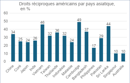 Un autre effet ricochet concerne la concurrence au sein de l’Asean. Les Philippines par exemple sont menacés de droits réciproques limités à 17% pour leurs exportations vers les États-Unis. C’était un avantage comparatif par rapport aux taux beaucoup plus élevés auxquels faisaient face le Vietnam, la Thaïlande ou le Cambodge. Les 20% obtenus par Hanoï réduisent très fortement l’écart avec Manille, et il devient impératif pour les négociateurs philippins d’obtenir un « deal » qui leur redonnerait un avantage comparatif dans la localisation des investissements étrangers au sein de l’Asean.