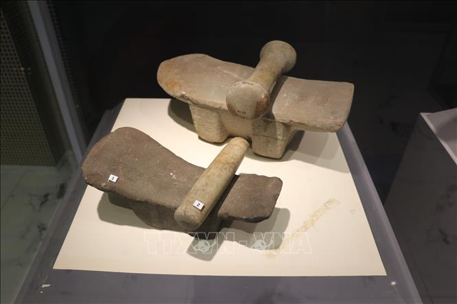 Le pilon est l’un des objets témoignant du développement de l’artisanat dans la culture Oc Eo. Photo : Hong Nhung/VNA