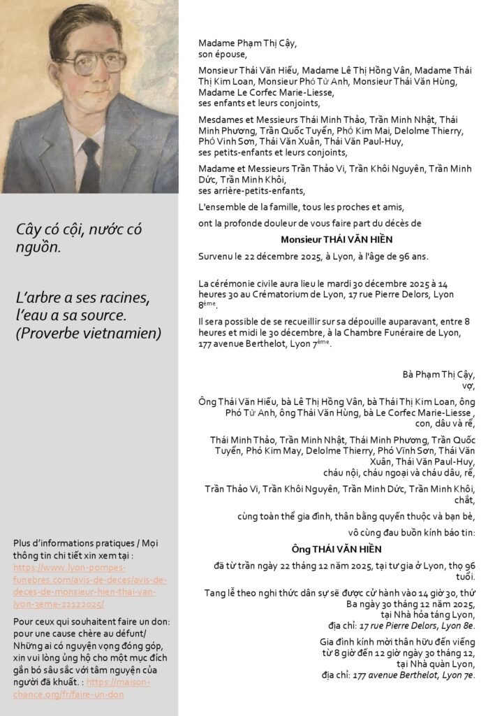 Home / Page d'accueil  / Faire-part de décès  / THÁI VĂN HIỀN (96 ans)