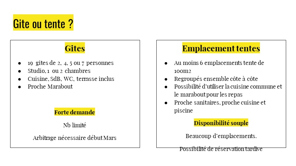 ●Village de 19 gîtes réservés pour notre groupe, à l’écart du reste du camping