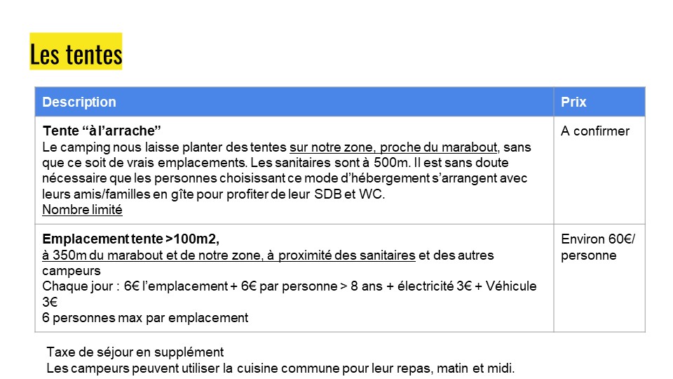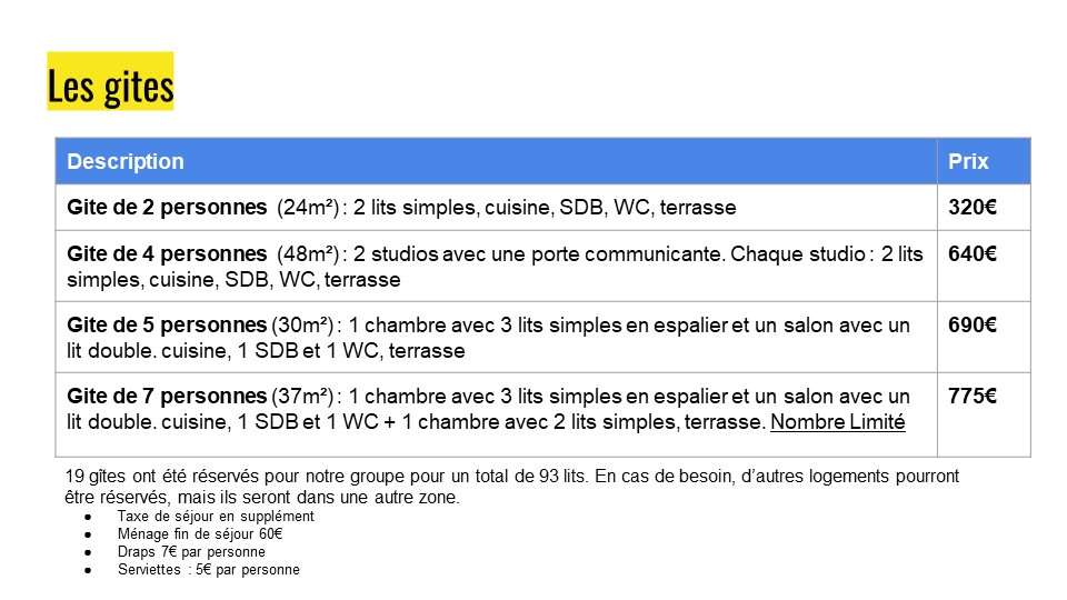 ●Maximum de matériel loué sur place, à prix raisonnable, pour simplifier la logistique. Il n’y aura pas de camion descendant de Paris, juste qqs voitures.