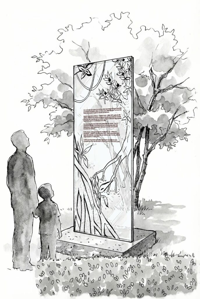 En décembre dernier, un davidia involucrata, plus connu sous le nom d’« arbre aux mouchoirs » et originaire d’Asie, a déjà été planté. Viendra bientôt l’accompagner une stèle en verre, dont l’illustration a été confiée à l’artiste plasticienne Kim Doan Quoc, membre du Collectif Vietnam-Dioxine.