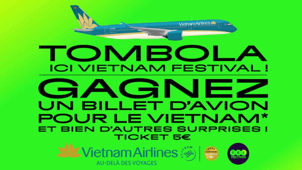 ✈️ Một vé máy bay khứ hồi* đi Việt Nam ! Và nhiều giải thưởng khác… Một tấm vé chỉ 5€ để có cơ hội trúng một vé máy bay đi Việt Nam, các bữa ăn ngon, sách cà phê, phiếu mua hàng, hội thảo nấu ăn… và nhiều bất ngờ khác! 👉 Mỗi vé = một cơ hội trúng thưởng 👉 Bốc thăm vào ngày 14 tháng 6 năm 2025 lúc 6 giờ chiều – Place Monge, Quận 5, Paris 👉 Mua vé ngay… và cầu mong may mắn! 🤞