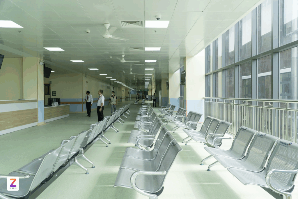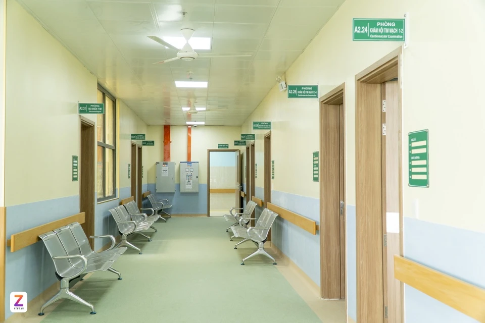 Hệ thống hành lang, khu chờ và các phòng khám được bố trí rộng, thông thoáng, bảo đảm luồng di chuyển thuận tiện cho bệnh nhân và nhân viên y tế. Toàn bộ bệnh viện đều có điều hòa không khí.