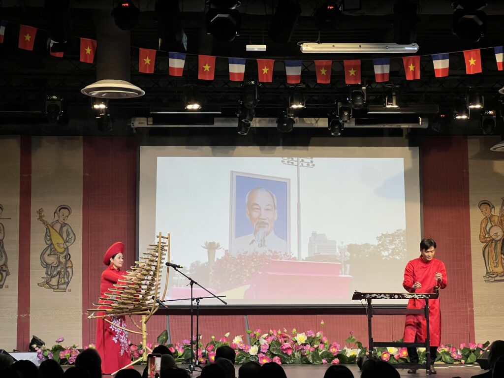 • Tiết mục hòa tấu nhạc cụ dân tộc: Các nghệ sĩ của Trung tâm Văn hóa Việt Nam tại Pháp đã biểu diễn một tiết mục nghệ thuật đặc sắc với nhạc cụ dân tộc . Trong trang phục áo dài truyền thống, nghệ sĩ trình diễn đàn T’rưng cùng nhạc cụ gõ dân gian, tái hiện âm thanh rộn rã của quê hương trên đất Pháp
