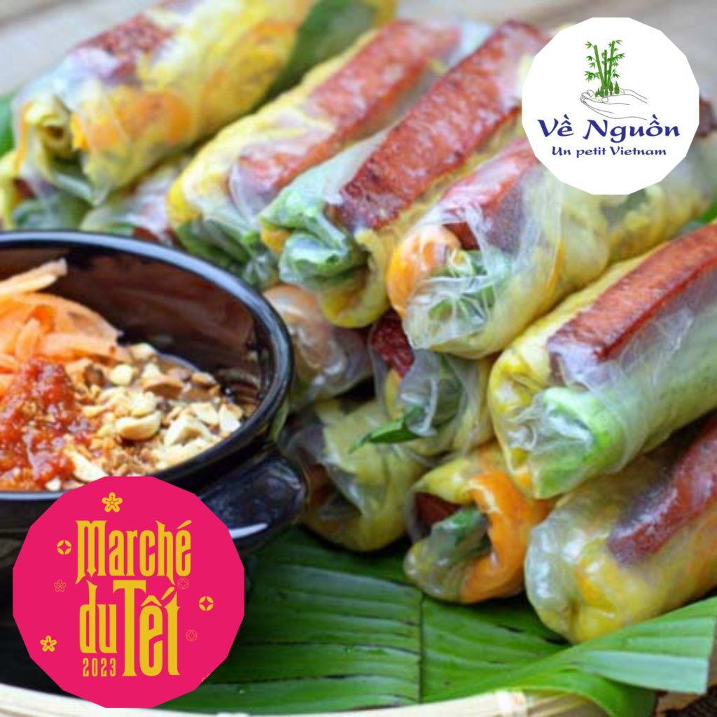 Như mọi năm, phân hội Về Nguồn cùng các phụ huynh cũng góp mặt tại gian hàng Chợ Tết với các món ăn truyền thống ngày Tết: bánh chưng, giò thủ, Bò bía mặn và Chè trôi nước.