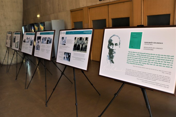 Tại sảnh trước Hội trường có nhiều tấm khổ lớn triển lãm các tài liệu, hình ảnh về các hoạt động cách mạng của Bác Hồ thời kỳ 1911 cho đến sau này và về con người « Danh nhân văn hóa của nhân loại » mà UNUSCO đã trao tặng cho Bác.