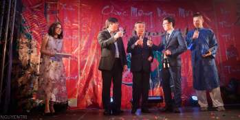 Anh Phan Quang Anh, chủ tịch Hội Sinh viên và GS Nguyễn Khắc Nhẫn, chủ tịch Hội Người Việt Nam ở Isère- Grenoble có vài lời chúc Tết và cám ơn các quan khách , các Giáo sư và kiều bào đến chia vui cùng các anh chị em sinh viên.