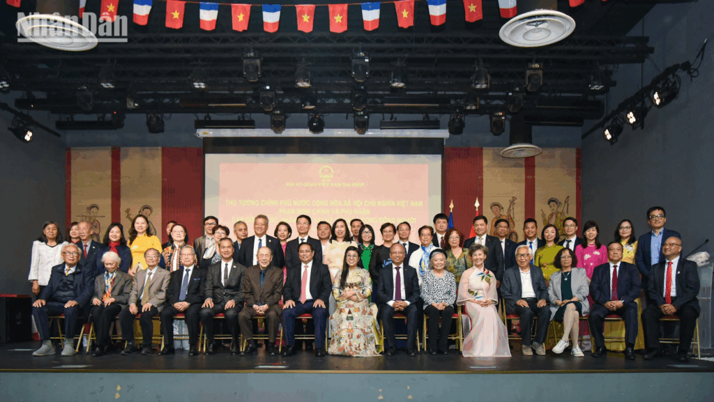 Phát biểu trước bà con kiều bào, Thủ tướng Phạm Minh Chính bày tỏ sự xúc động khi được gặp gỡ cộng đồng người Việt tại Pháp – một cộng đồng có truyền thống yêu nước sâu sắc, được chính Chủ tịch Hồ Chí Minh đặt nền móng từ những ngày đầu của cách mạng Việt Nam.
