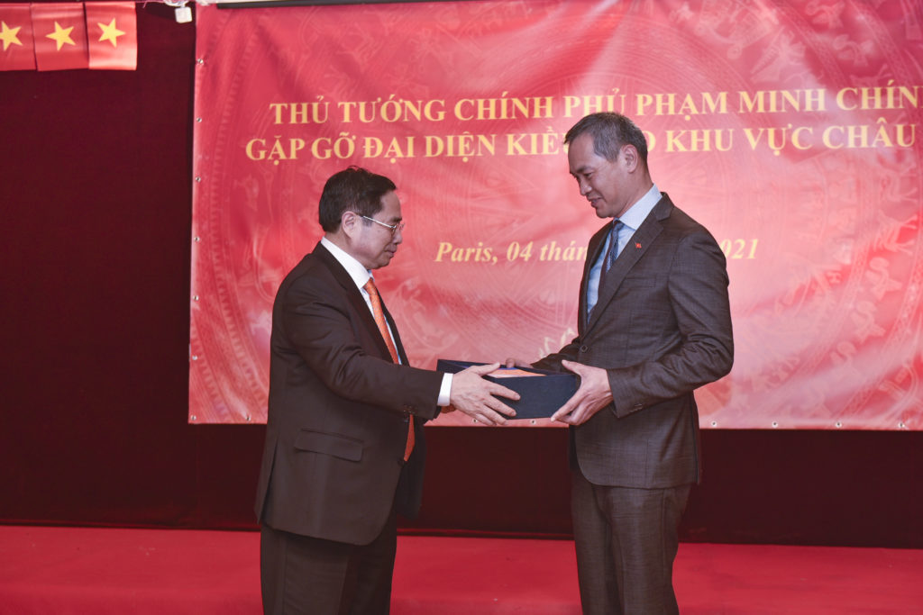 Nhân dịp chuyến thăm chính thức nước Pháp , ngày 4/11 Thủ tướng Phạm Minh Chính đã gặp gỡ và tăng bằng khen