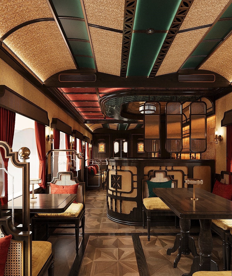 Theo trang web chính thức của Sjourney, bên trong tàu được thiết kế theo phong cách Đông Dương (Indochine) năm 1930 với tông màu trung tính. Đoàn tàu có tổng cộng ít nhất 13 toa, bao gồm 10 toa ngủ (trong đó mỗi toa chỉ có 3 buồng hạng VIP dành cho khách với tiêu chuẩn 7 sao) và khu vực Bistro Car (một quầy rượu, một lounge và một nhà hàng). Tại toa ngủ, du khách có thể lựa chọn phòng cabin giường đôi hoặc cabin giường đơn với diện tích khoảng 10 m2 và có quản gia riêng.